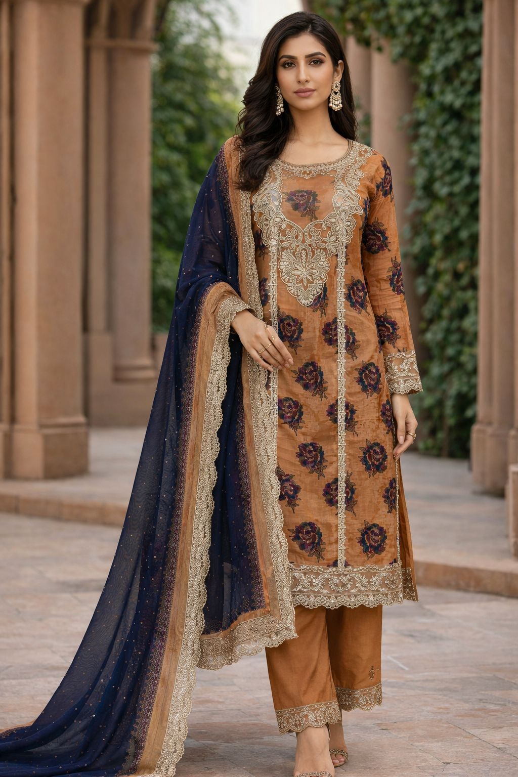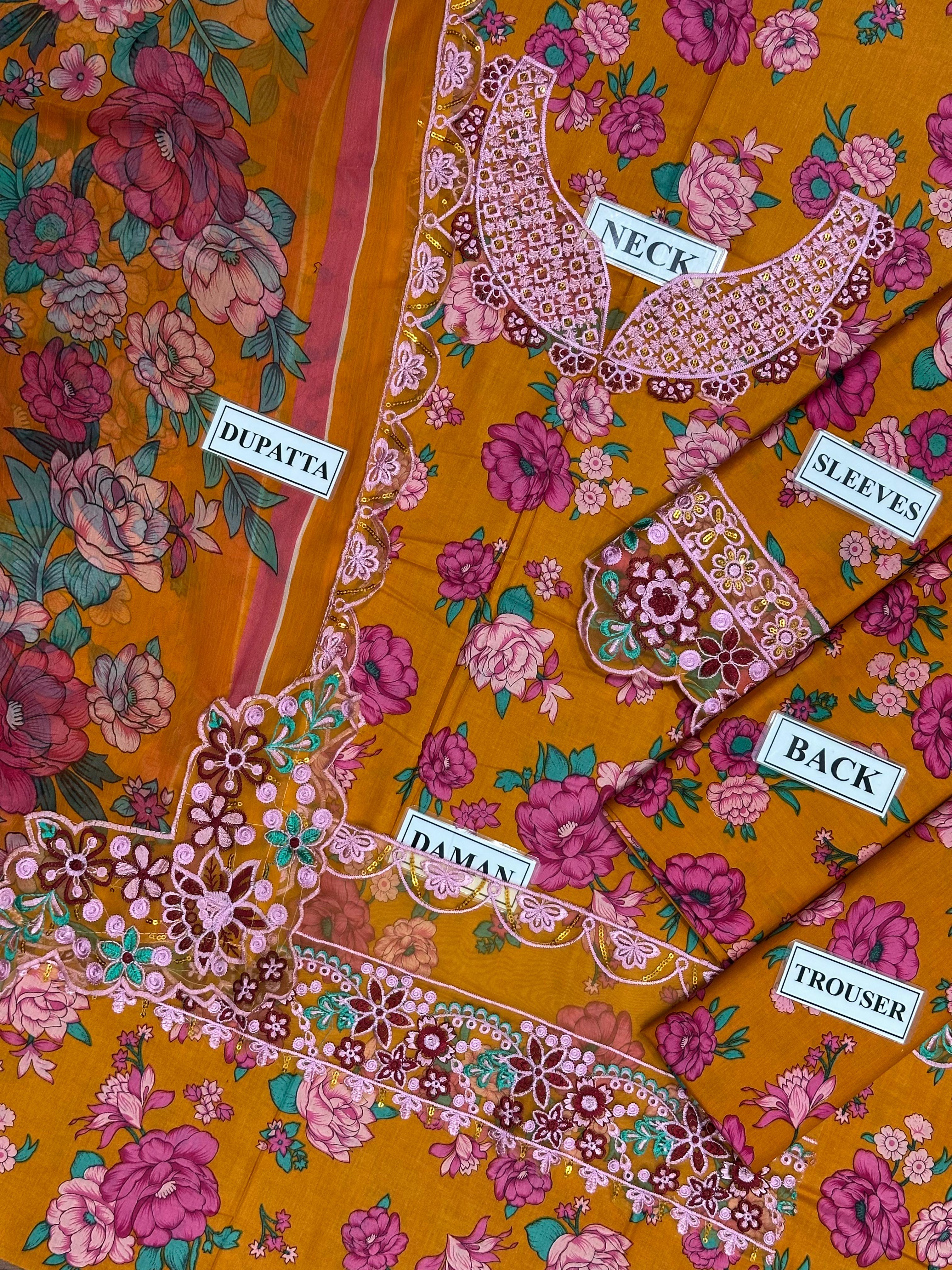 Lawn with organza duppata 3pcs