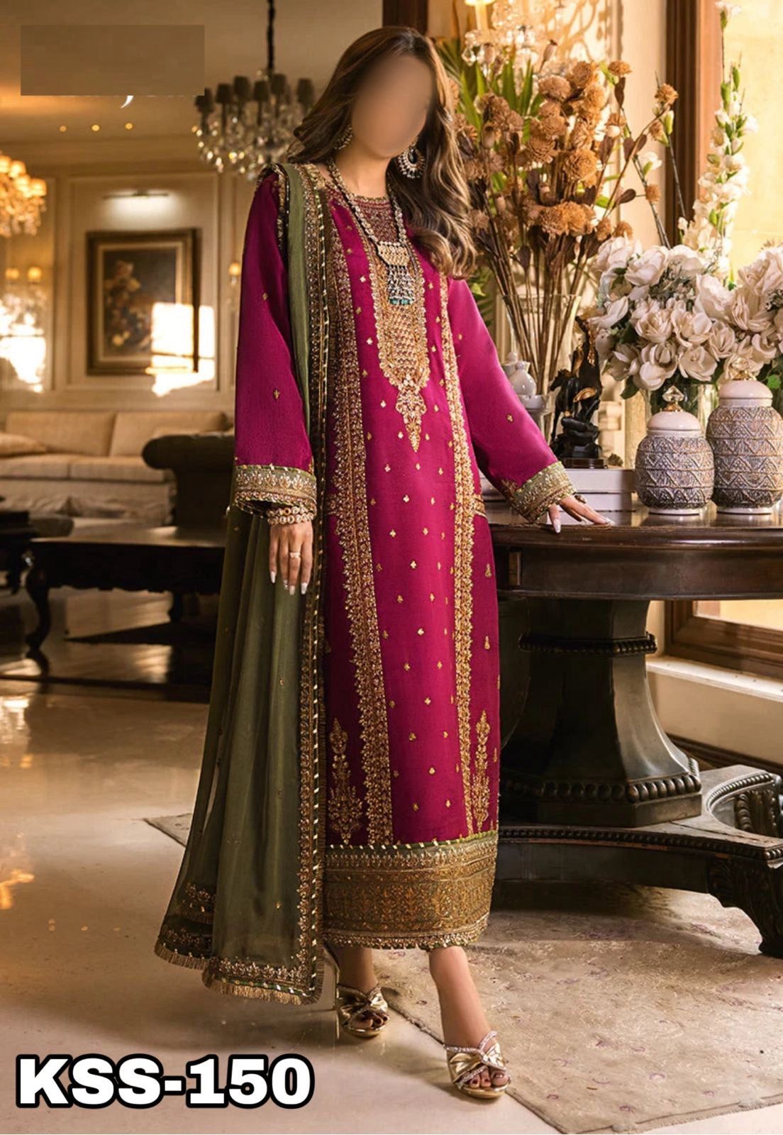 Chicken kari Lawn with Organza Duppata 3-PCS