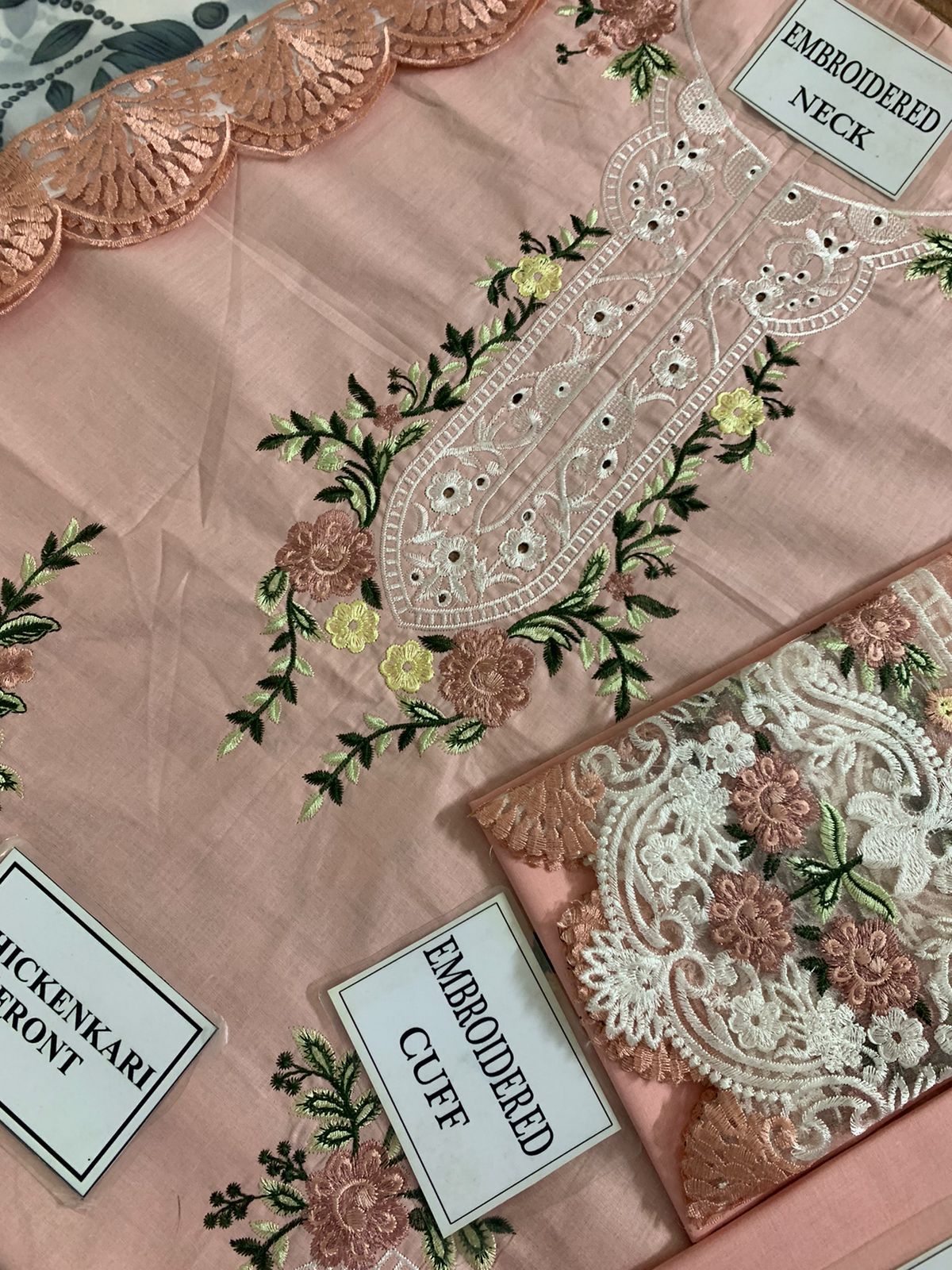 HEAVY EMBROIDERED CHICKENKARI COTTON FRONT WITH EMBROIDERED CUTWORK DAMAN PATCH
