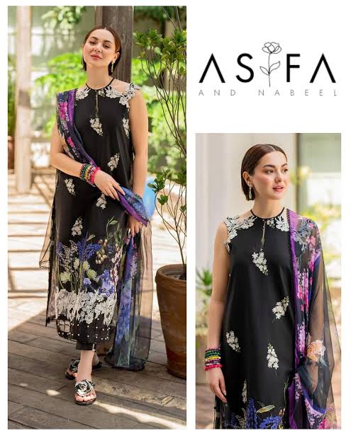 Printed Lawn suit with embroidery patches with Chiffon 4side Embroidery border and embroidered patch